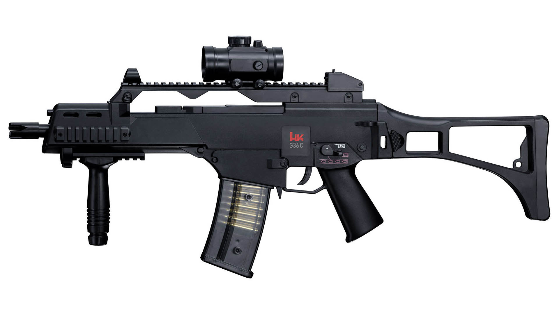 Elektrický airsoft samopal, imitující německou útočnou pušku H&K G36C.
