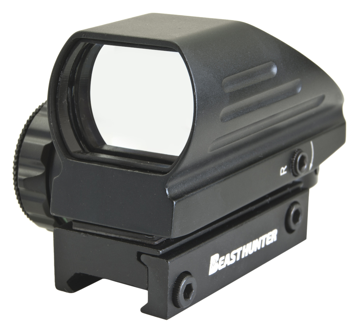 Kolimátor má zaměřovací bod ve tvaru tečky, tečky v kolečku, kříže, kříže s kolečkem s možností volby červené nebo zelené barvy.