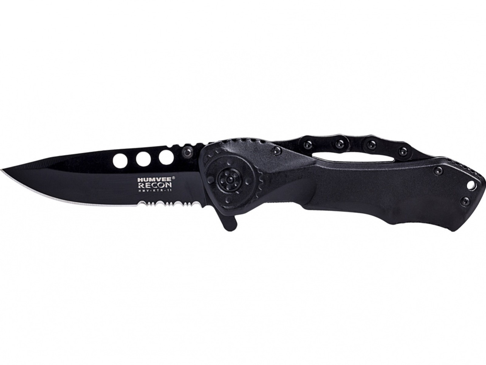 Nůž Humvee Tactical Recon Knife 11 je možné otevírat jednoručně pomocí čepu na čepeli. S otevíráním Vám pomůže pružina.