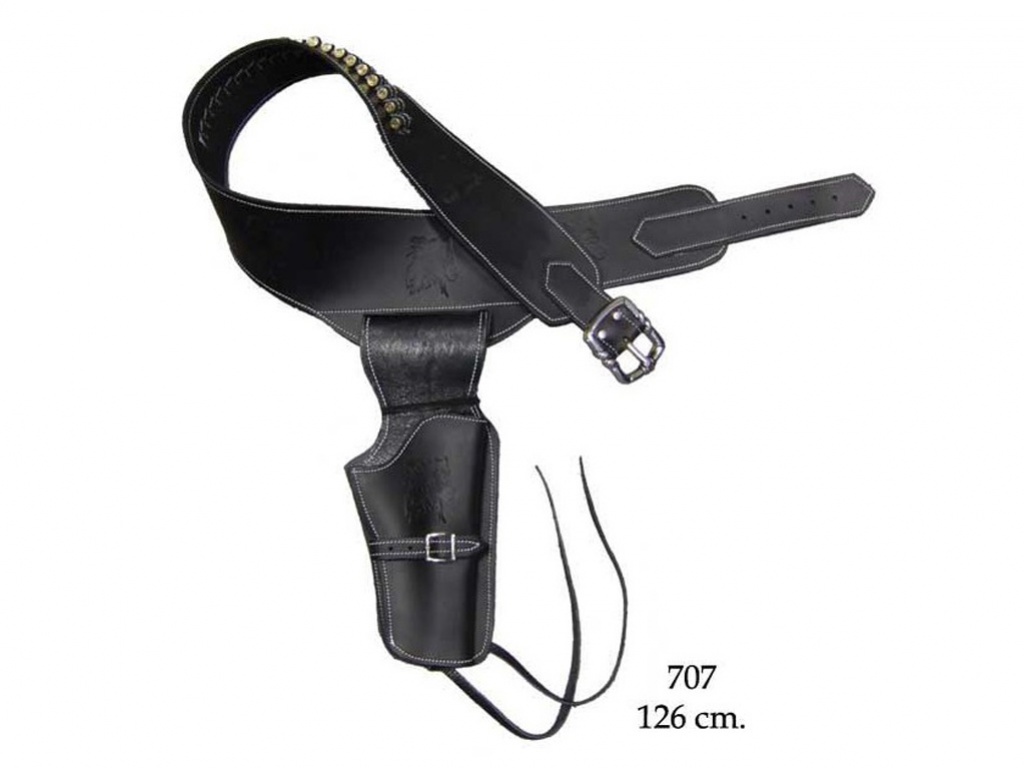 Western pouzdro s opaskem a náboji, povedené kožené pouzdro pro revolvery nejen typu peacemaker.