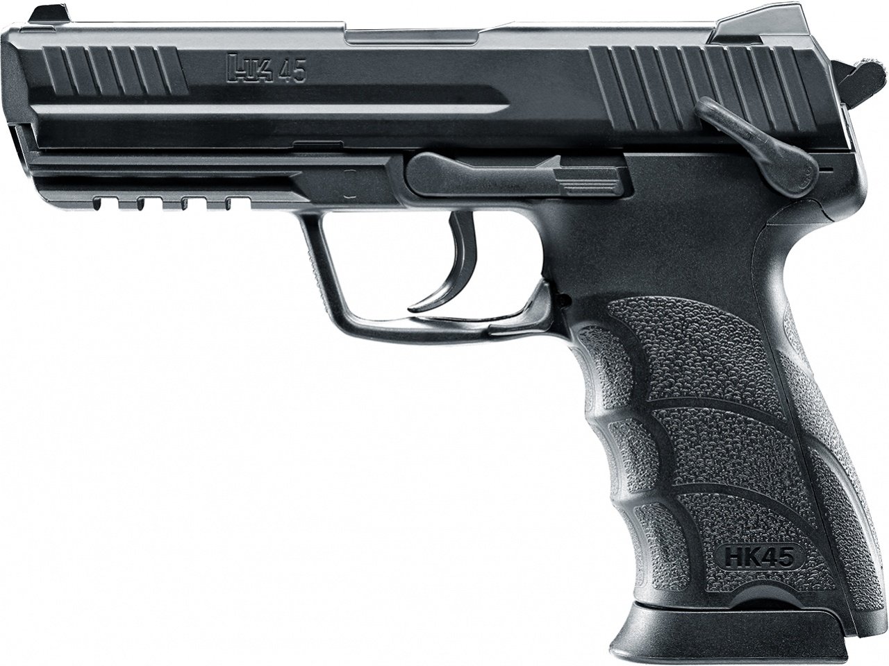Vzduchová pistole Umarex Heckler&Koch 45 na CO2 je vynikající replikou HK 45 včetně ražených log. Tělo zbraně je polymerové s kovovým závěrem. Bombička se vkládá přímo do rukojeti pistole a samostatný zásobník je určen pro 19 ocelových BB broků. Vzduchová pistole Heckler&Koch 45 dále disponuje weaver lištou 22m umístěnou pod hlavní, pojistkou proti náhodnému výstřelu a systémem Double Action - stiskem spouště se zároveň natahuje také kouhout. Zbraň je určena pro rychlou taktickou střelbu systémem DAO. Velká kapacita zásobníku umožní opravdu destrukční střelbu na předměty.