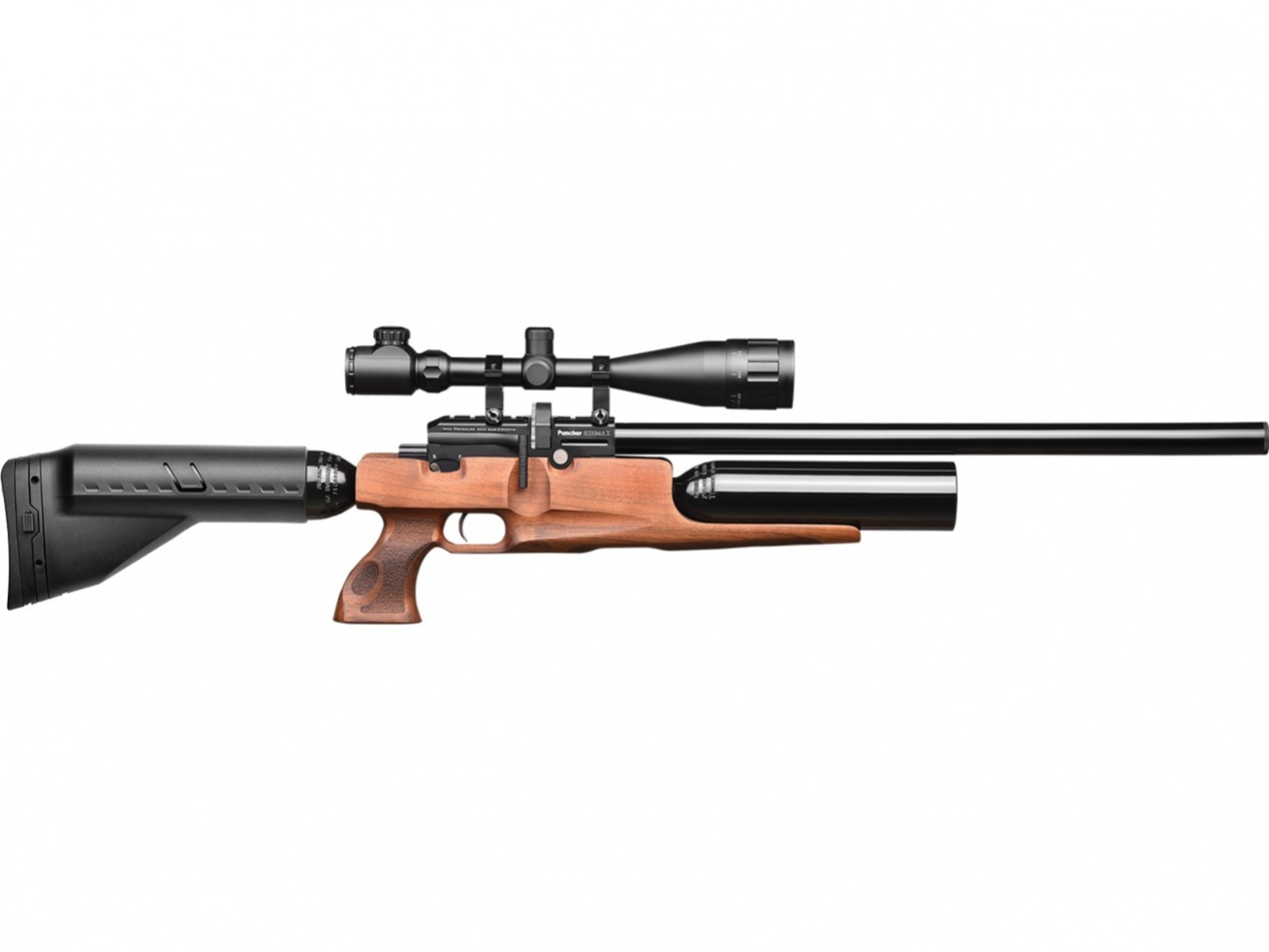 Pažba vzduchovky Puncher je vyrobena z nádherného tureckého dřeva - ořech a polymerovým krytím zadní kartuše.